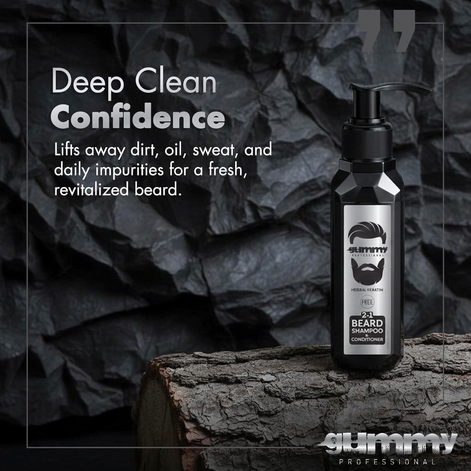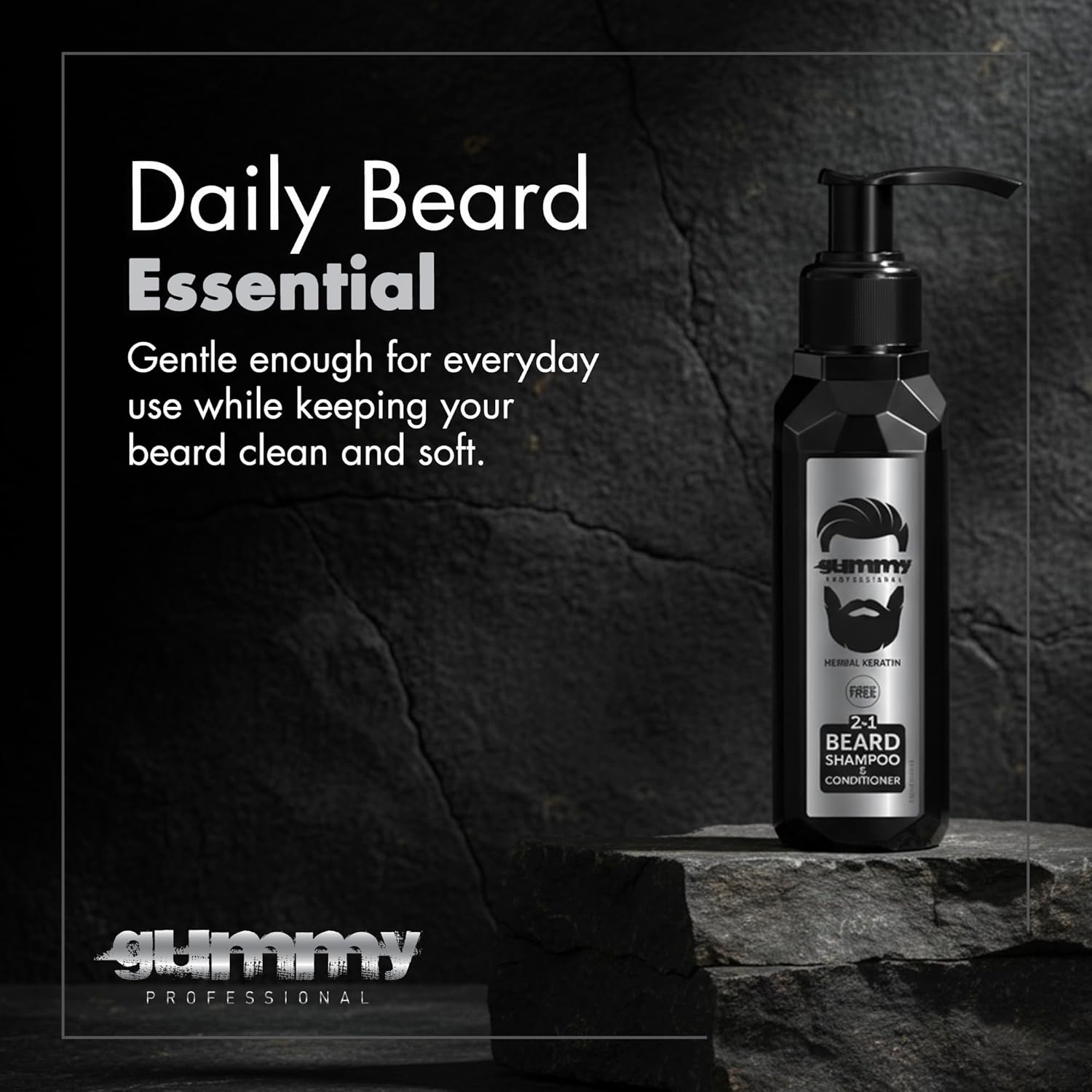 Gummy Professional 2-in-1 Beard Shampoo & Conditioner - Silicone-Free, Vitamin-Infused Beard Cleanser for Hydration & Dandruff Prevention, 100ml