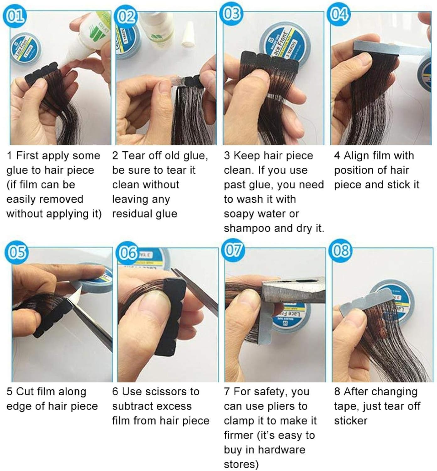 Usage: Cut the tape to your desired length and apply it to the extension, wig, or hairpiece. Ensure the application area is clean and dry for optimal adhesion. For best results, follow the manufacturer's instructions for application and removal.