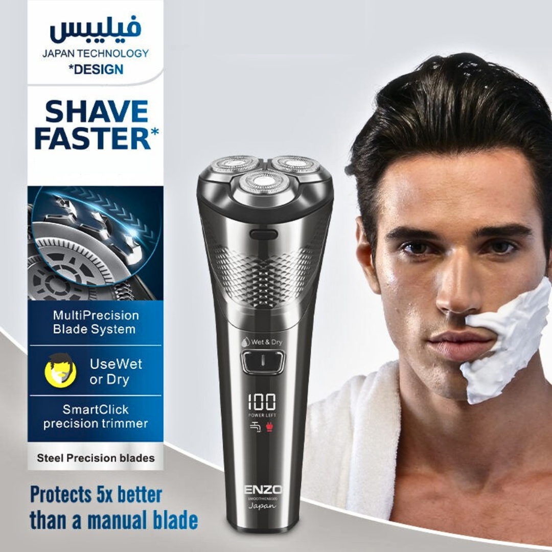 The ENZO USB Powered Triple Blade Electric Shaver is a compact and versatile grooming tool designed for household, travel, and office use. Featuring a multiprecision triple blade system, it delivers a smooth and precise shave every time. The smart click precision trimmer ensures clean edges and detail work.