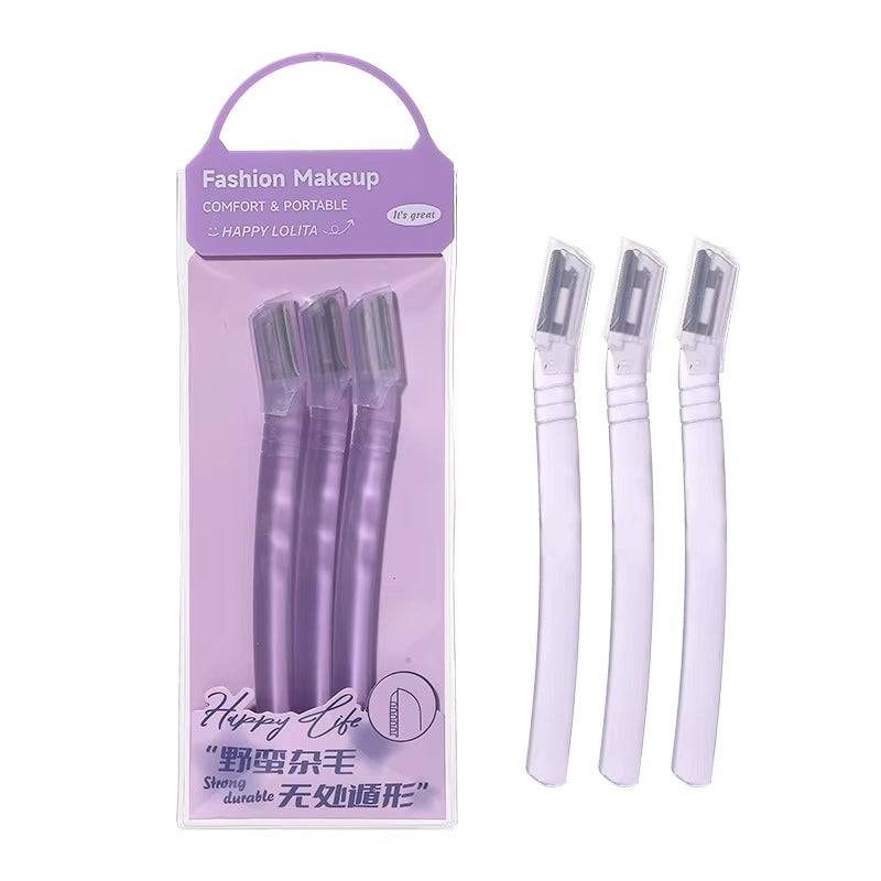 Eyebrow Razor Set LLT05 – 3pcs Serrated Facial Hair & Eyebrow Trimmers, Washable Stainless Steel Blades, Multipurpose Grooming Tool, Reusable Handle, Purple
