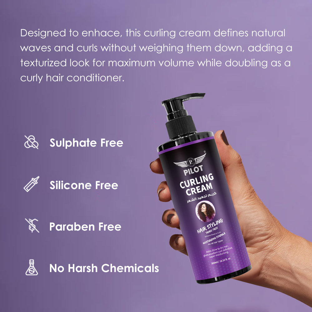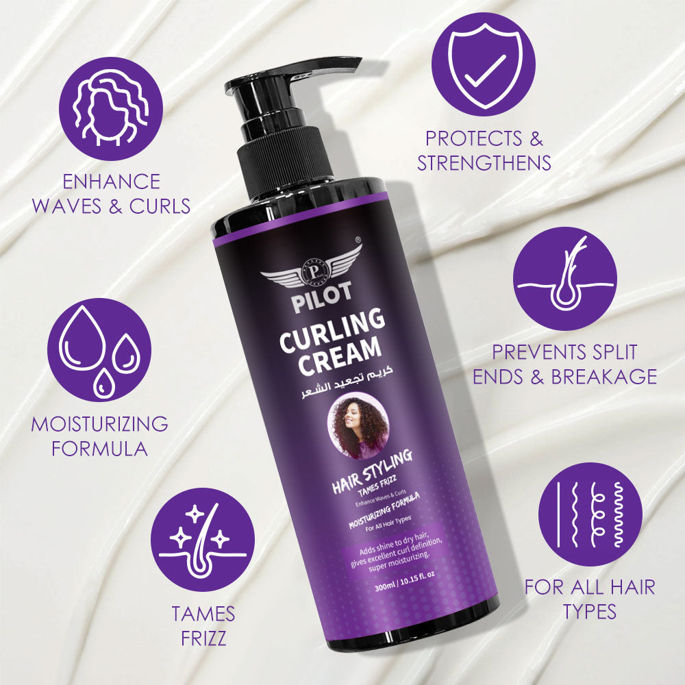 Pilot Curling Cream 300ml – Curl Defining & Texturizing Cream for Waves & Curls – Lightweight, Hydrating, Frizz-Control Styling & Conditioning for All Hair Types