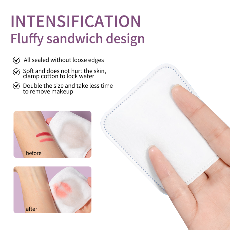 Cotton Pads SY456 – Purple 50pcs Large, Thick, Silky Soft Makeup Removal Pads, Plant Fiber, Lint-Free, Hemmed Edges