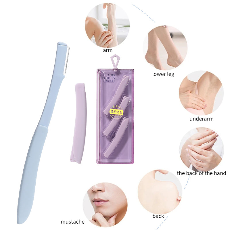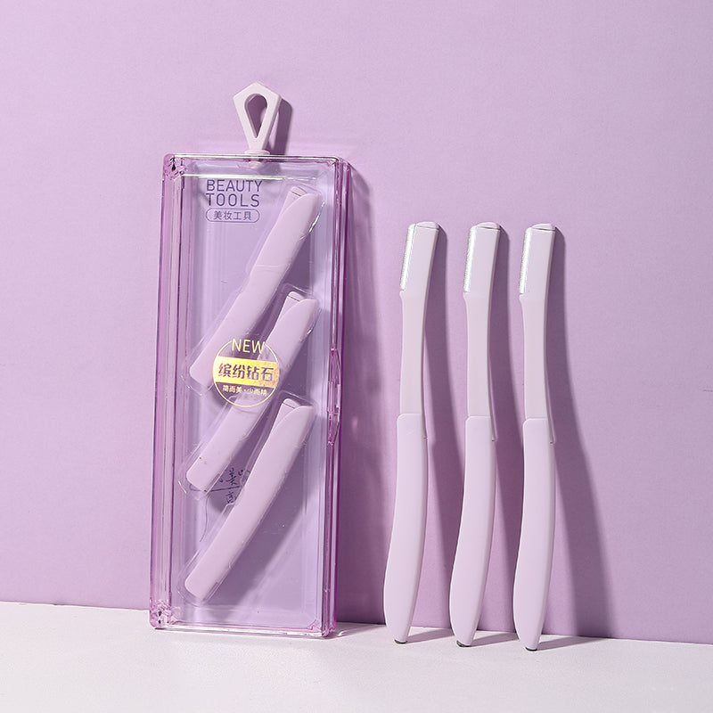 Eyebrow Razor SY340 3pcs - Purple Safe & Precise Foldable Safe Eyebrow Trimmer with Protective Case (Purple)