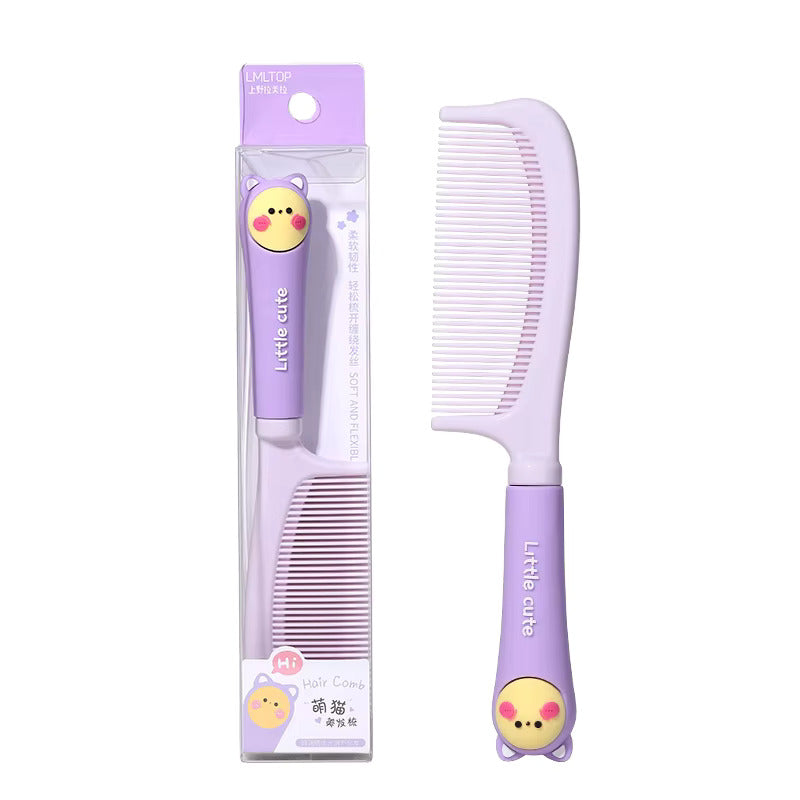 Hair Comb SY749 – Pliable & Durable Kid-Friendly Hair Detangler with Silicone Cat Handle, Safe for Scalp, Purple