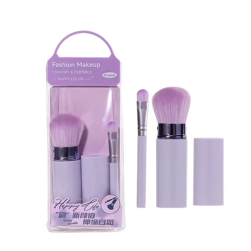 Makeup Brush Set LLT29 – 2pcs Retractable Face Brush + Precision Eyeshadow Brush , Soft Nylon Bristles, Travel-Friendly