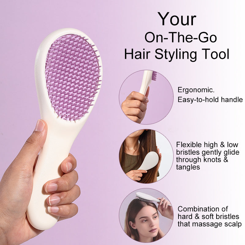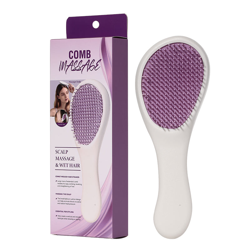 Massage Hair Comb C166 – Ergonomic Scalp Massaging Detangling Brush with Flexible Hard & Soft Bristles, Comfortable Grip, Purple