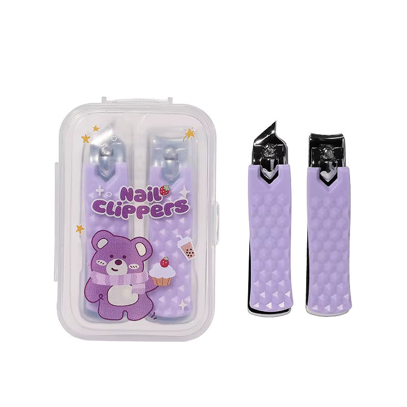 Nail Clipper SY349 – 2pcs Stainless Steel Set: Flat & Diagonal/Curved Blades with Storage Box for Precise Fingernail & Toenail Trimming – Durable & Portable