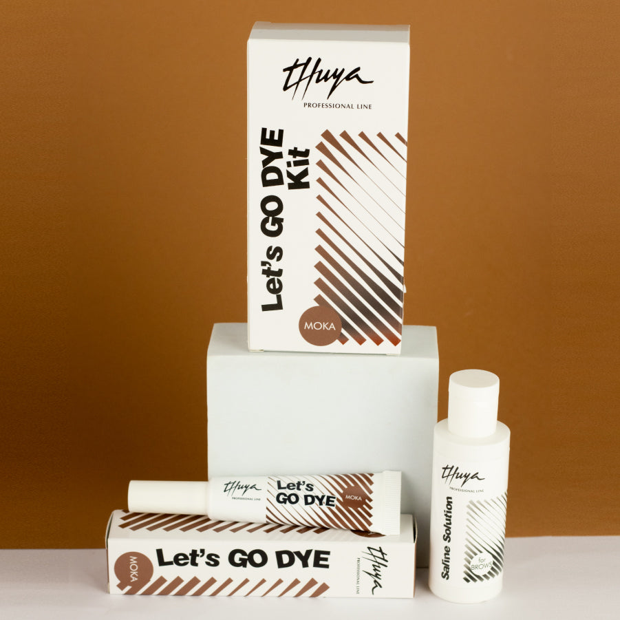 Thuya Let’s Go Dye Kit – Direct Gel Eyebrow Tinting with Saline Solution, 3 Shades: Caramel, Dark Chocolate & Moka, Long-Lasting Professional Brow Color, At-Home or Salon Use