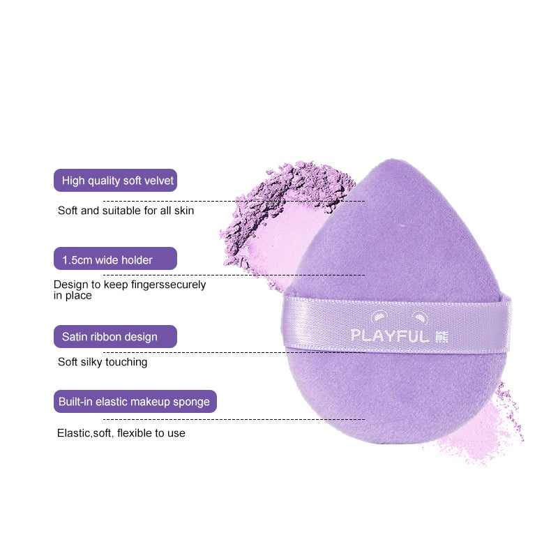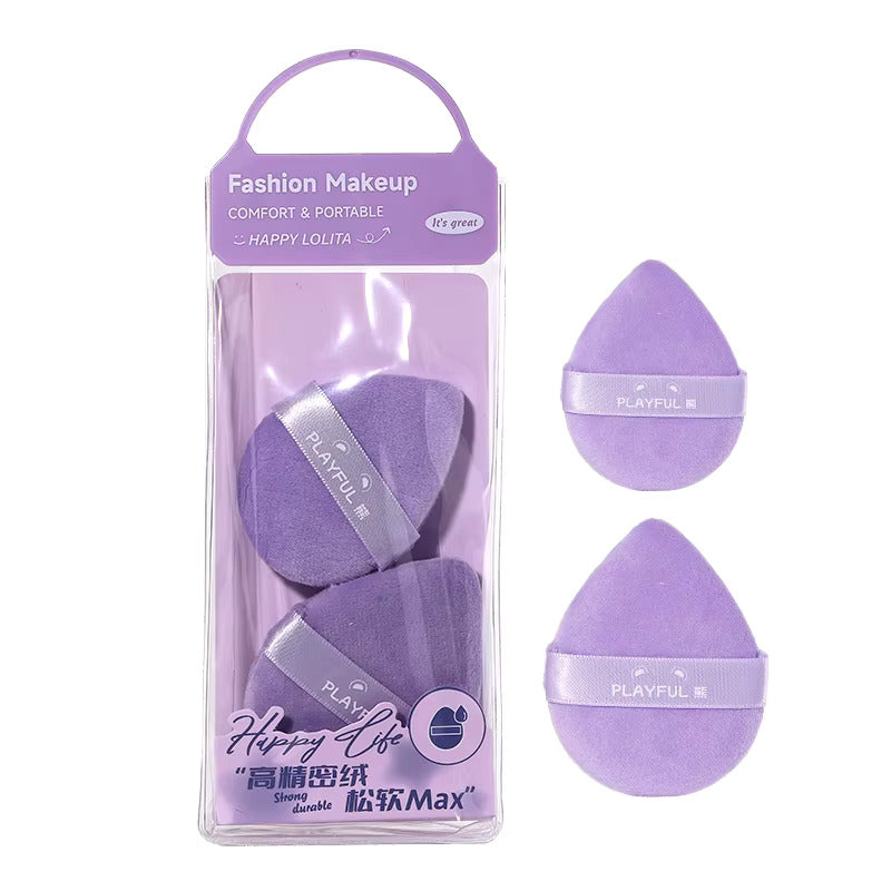 Triangle Velvet Makeup Puffs LLT16 – 2pcs Latex-Free Cotton Velvet Powder Puffs for Loose Powder, Under-Eye Setting & Concealer (Purple)