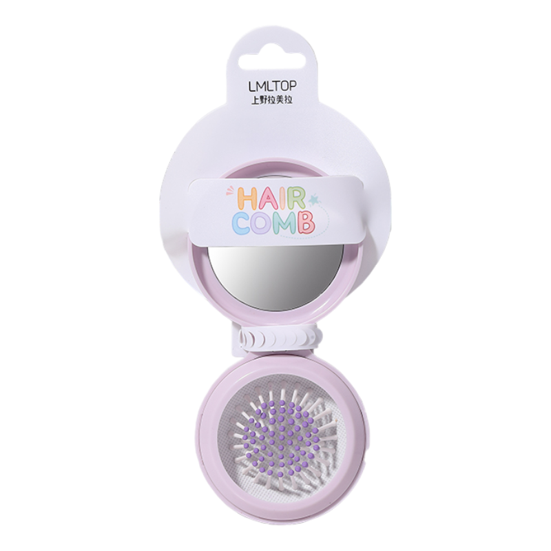Hair Comb SY758 – 2-in-1 Foldable Hair Comb with Mirror, Circular Teeth Scalp Massage, Travel-Friendly Compact Design, Pink/Purple